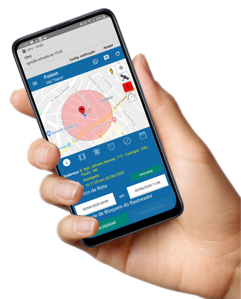 Caso o veículo viole a cerca virtual programada você é notificado na mesma hora.